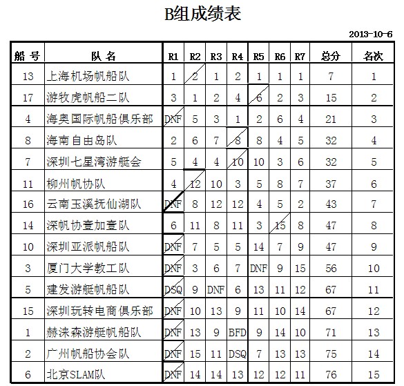 >第九屆中國俱樂部杯帆船挑戰(zhàn)賽第一賽段成績