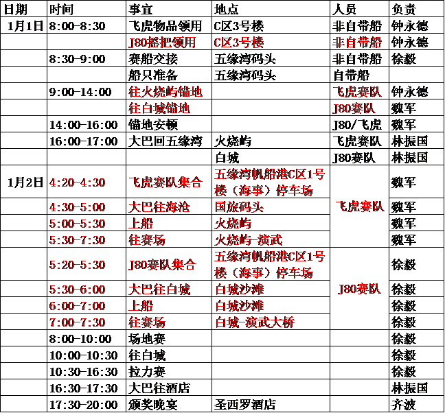 2014年新年帆船賽最新日程表(2013年12日31日)