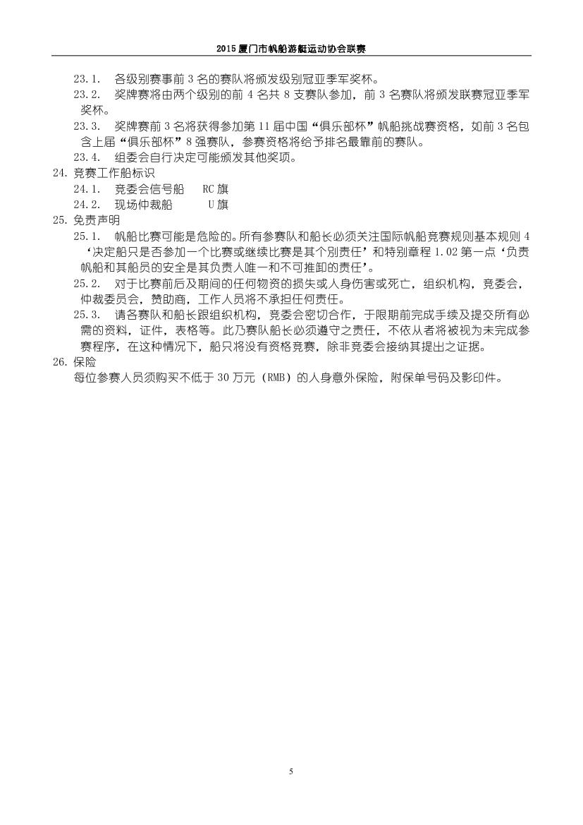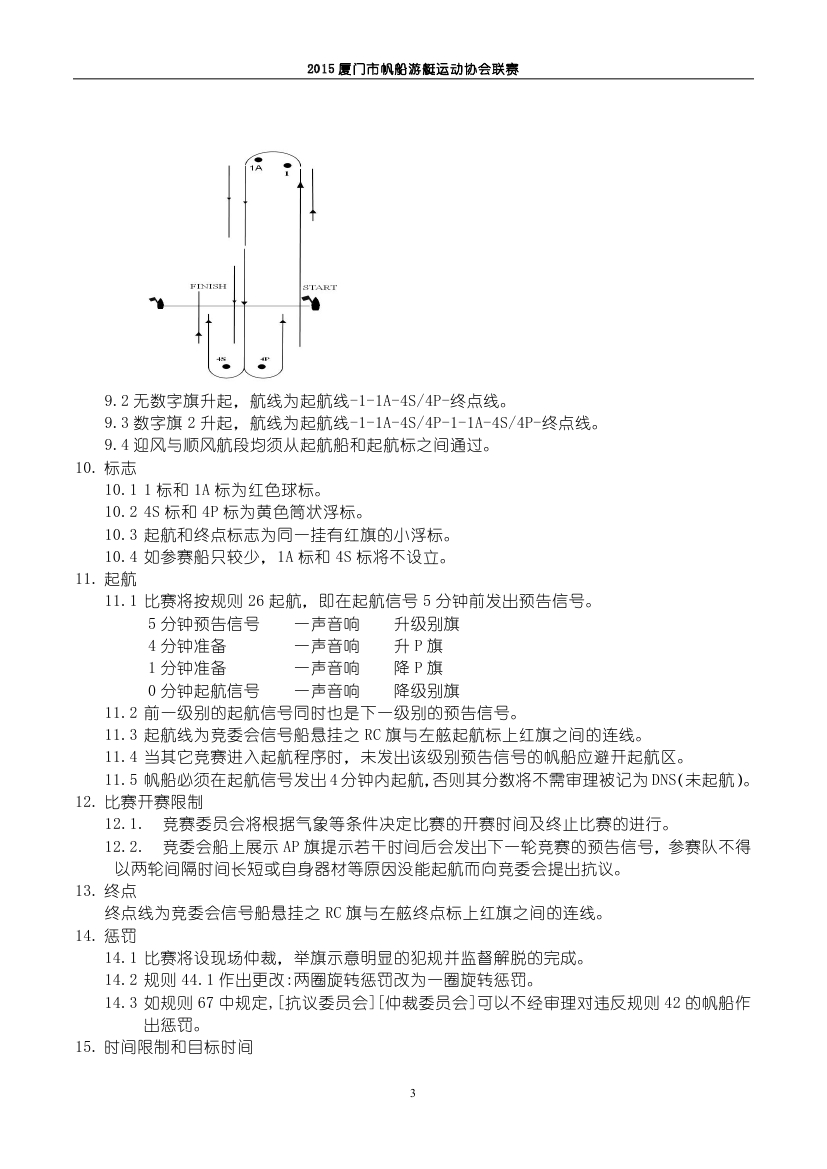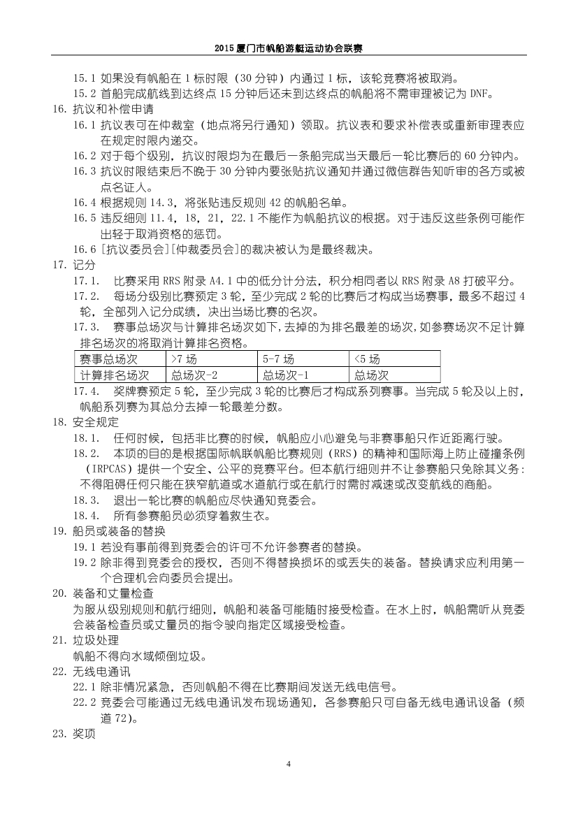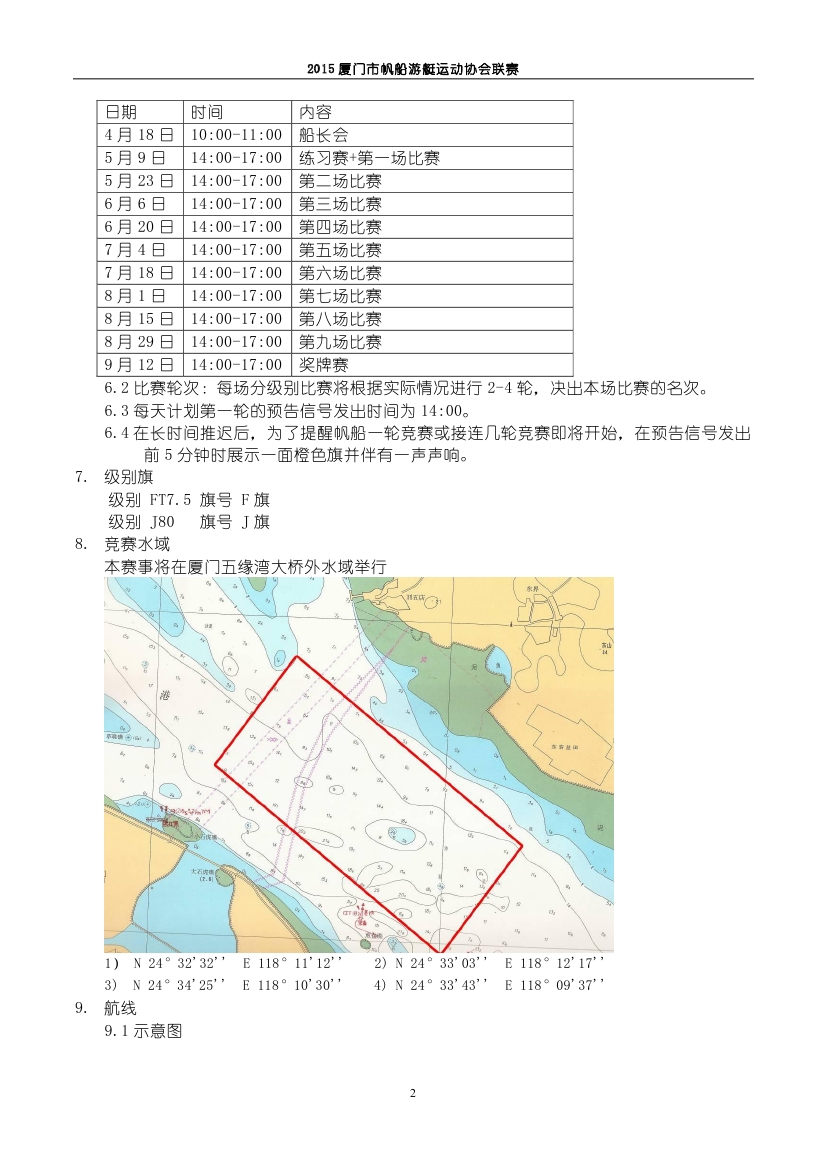 2015廈門市帆船游艇運動協(xié)會聯(lián)賽航行細則