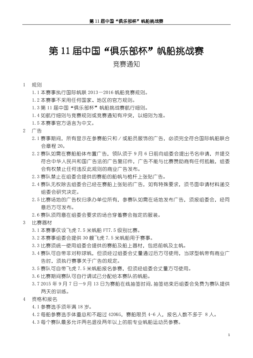 第11屆中國“俱樂部杯”帆船挑戰(zhàn)賽競賽通知
