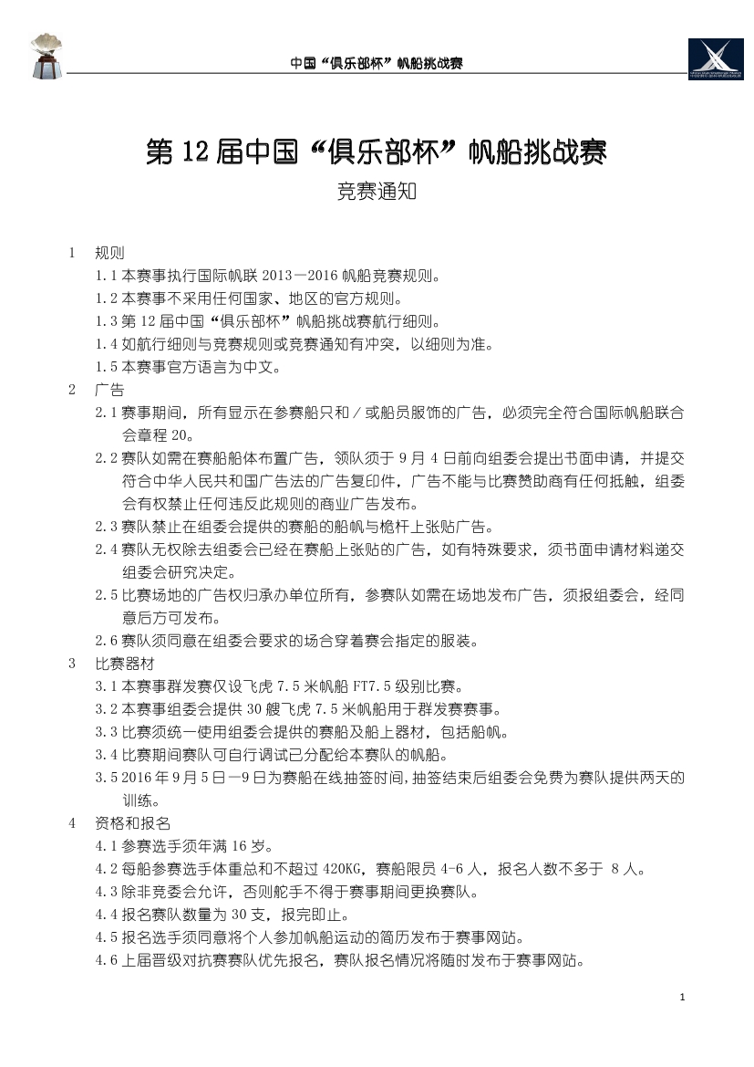 第12屆中國“俱樂部杯”帆船挑戰(zhàn)賽競賽通知