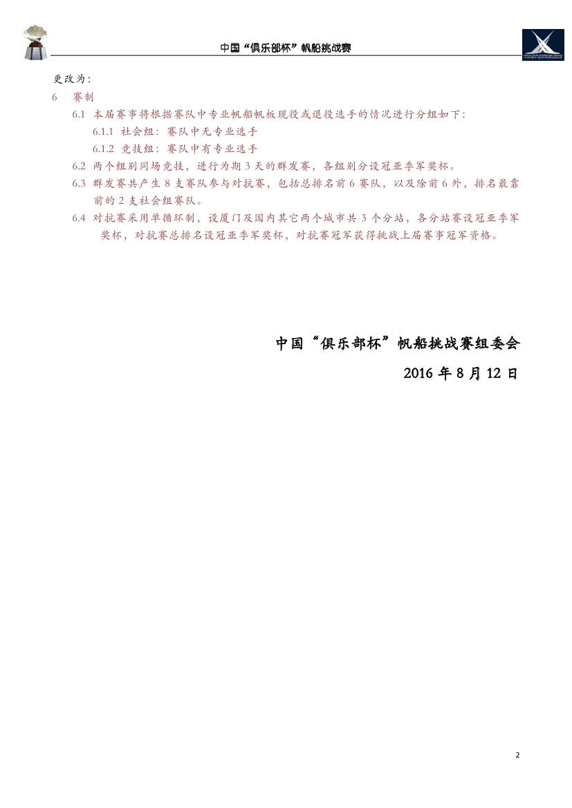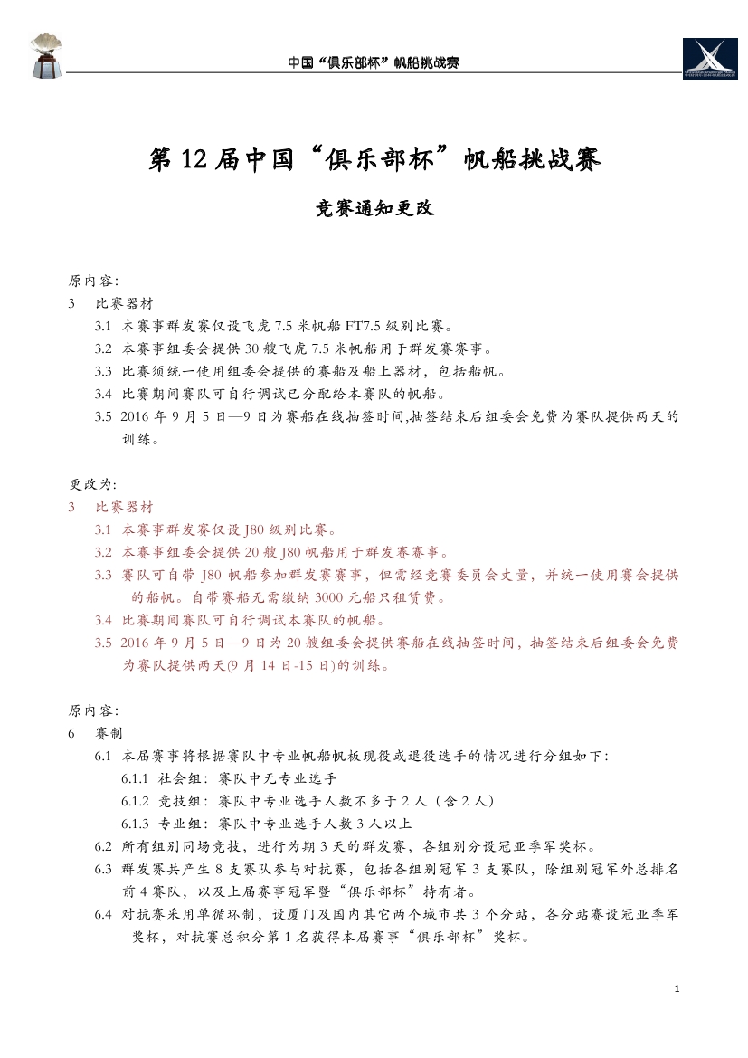 >第12屆中國“俱樂部杯”帆船挑戰(zhàn)賽競賽通知更改