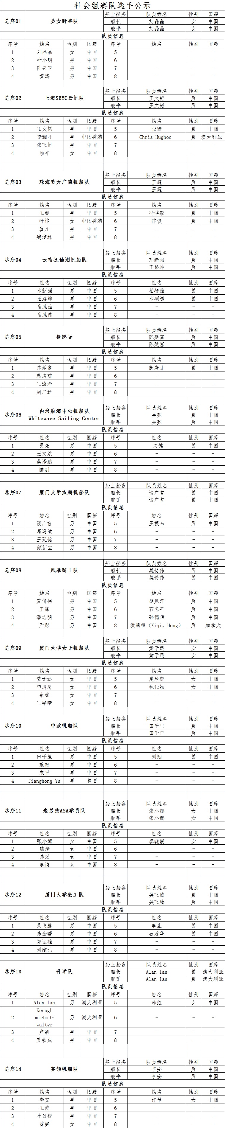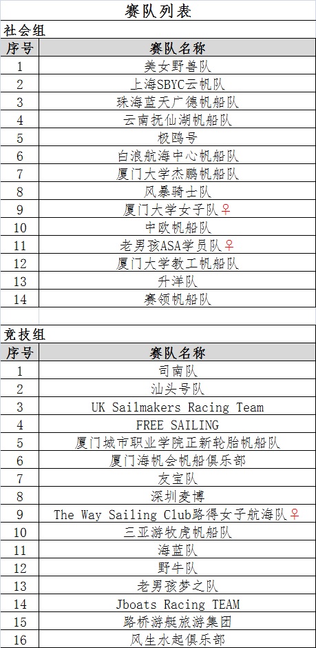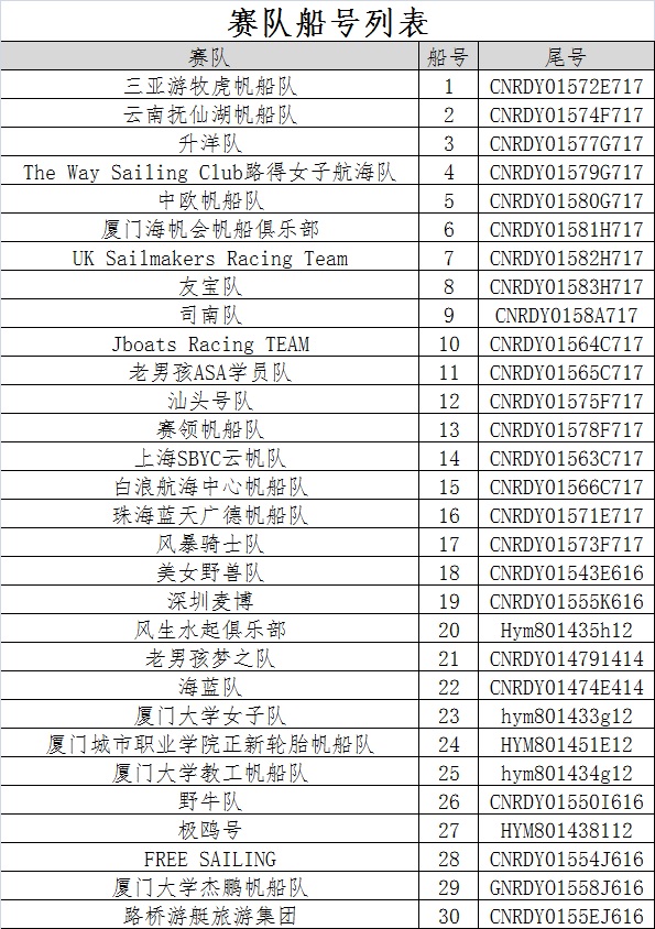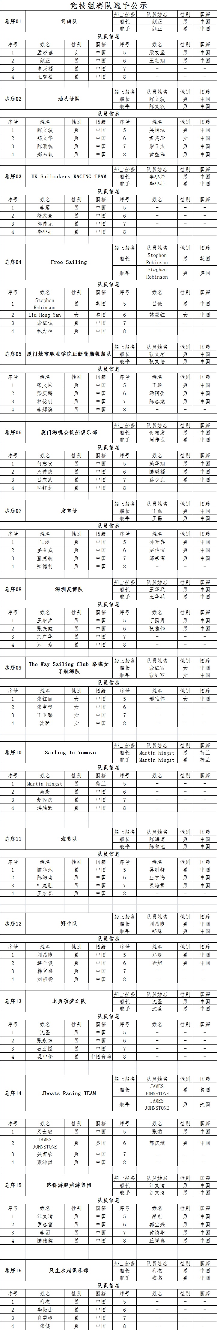 >第12屆中國(guó)“俱樂(lè)部杯”帆船挑戰(zhàn)賽賽隊(duì)及選手公示