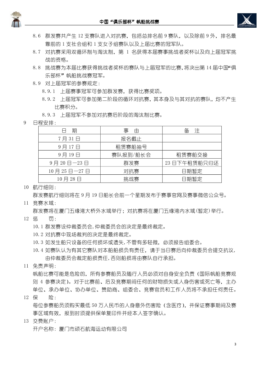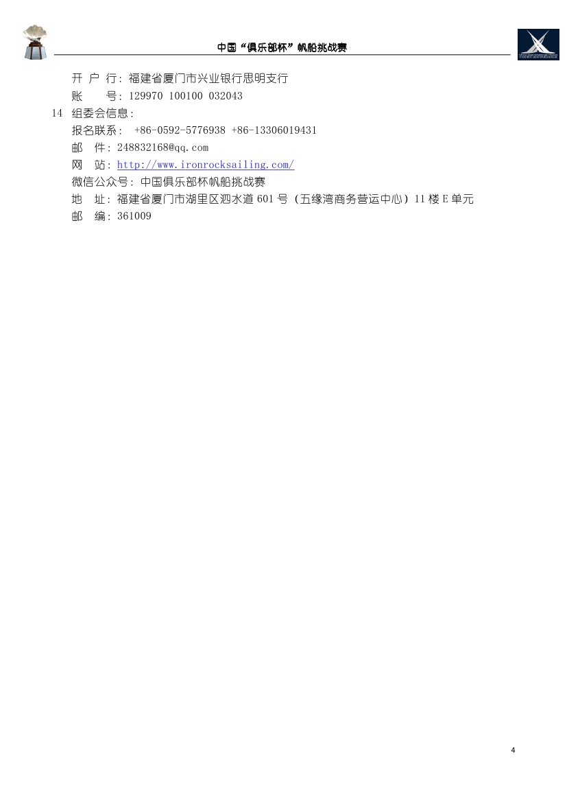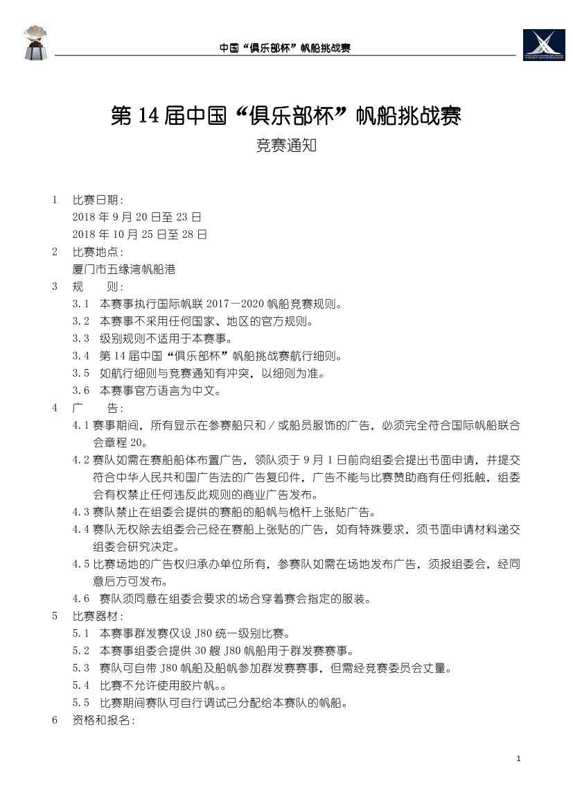 >第14屆中國(guó)“俱樂(lè)部杯”帆船挑戰(zhàn)賽 競(jìng)賽通知