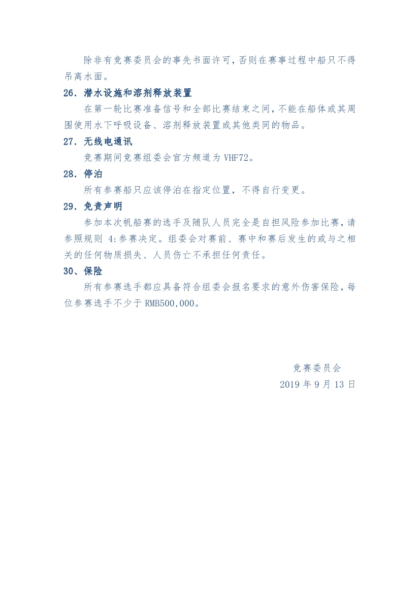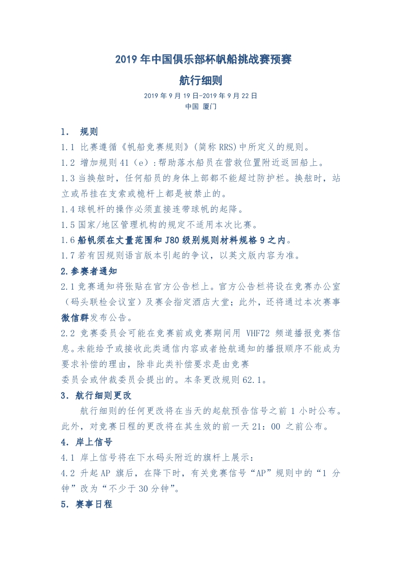 第15屆中國俱樂部杯帆船挑戰(zhàn)賽 航行細(xì)則